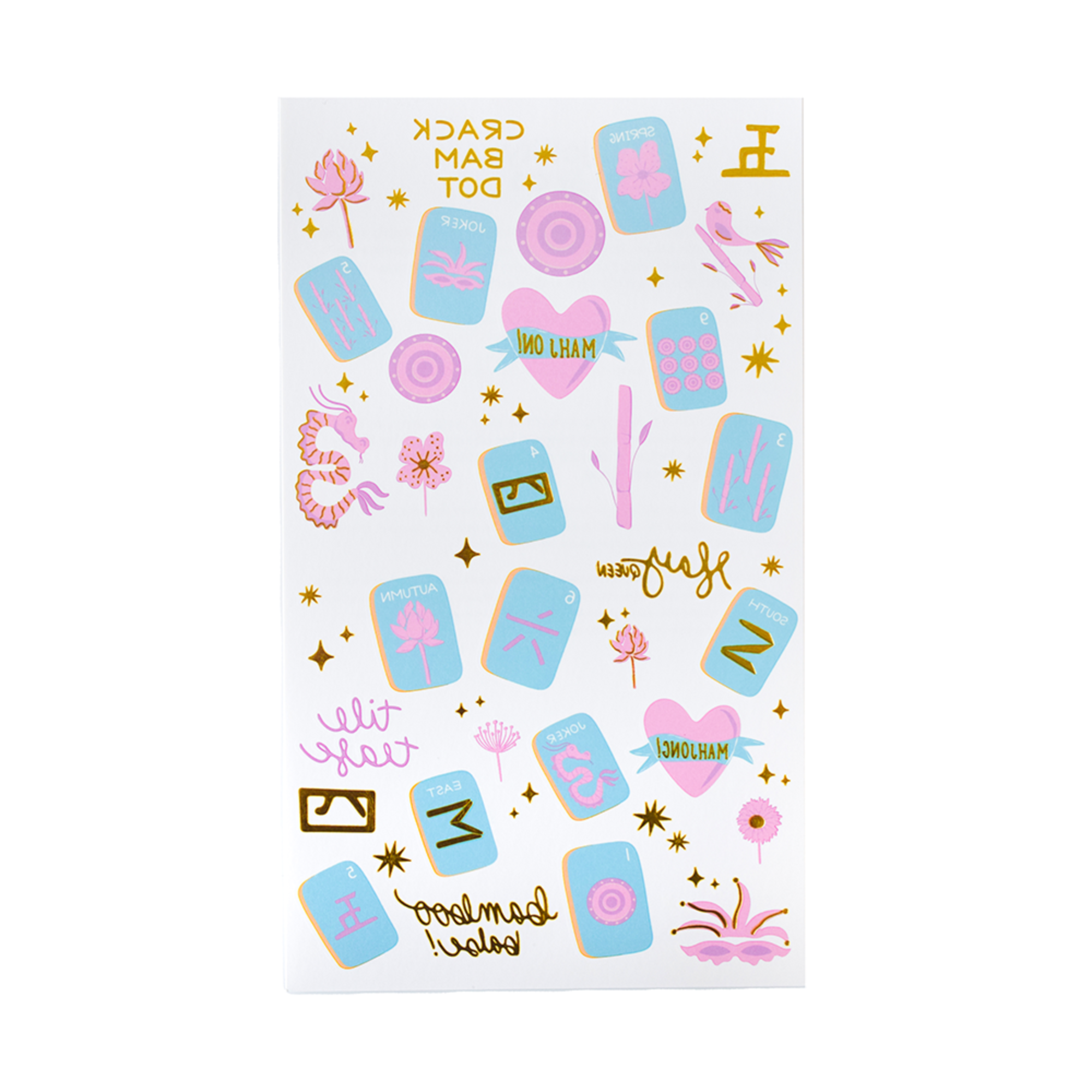 Ready to roll the dice on fun? The Game Night Collection is your ultimate party power-up! For the players who bet big on fun and style. These Mahjong Party Pack Tattoo Sheets bring a little high-stakes sass to your game night.