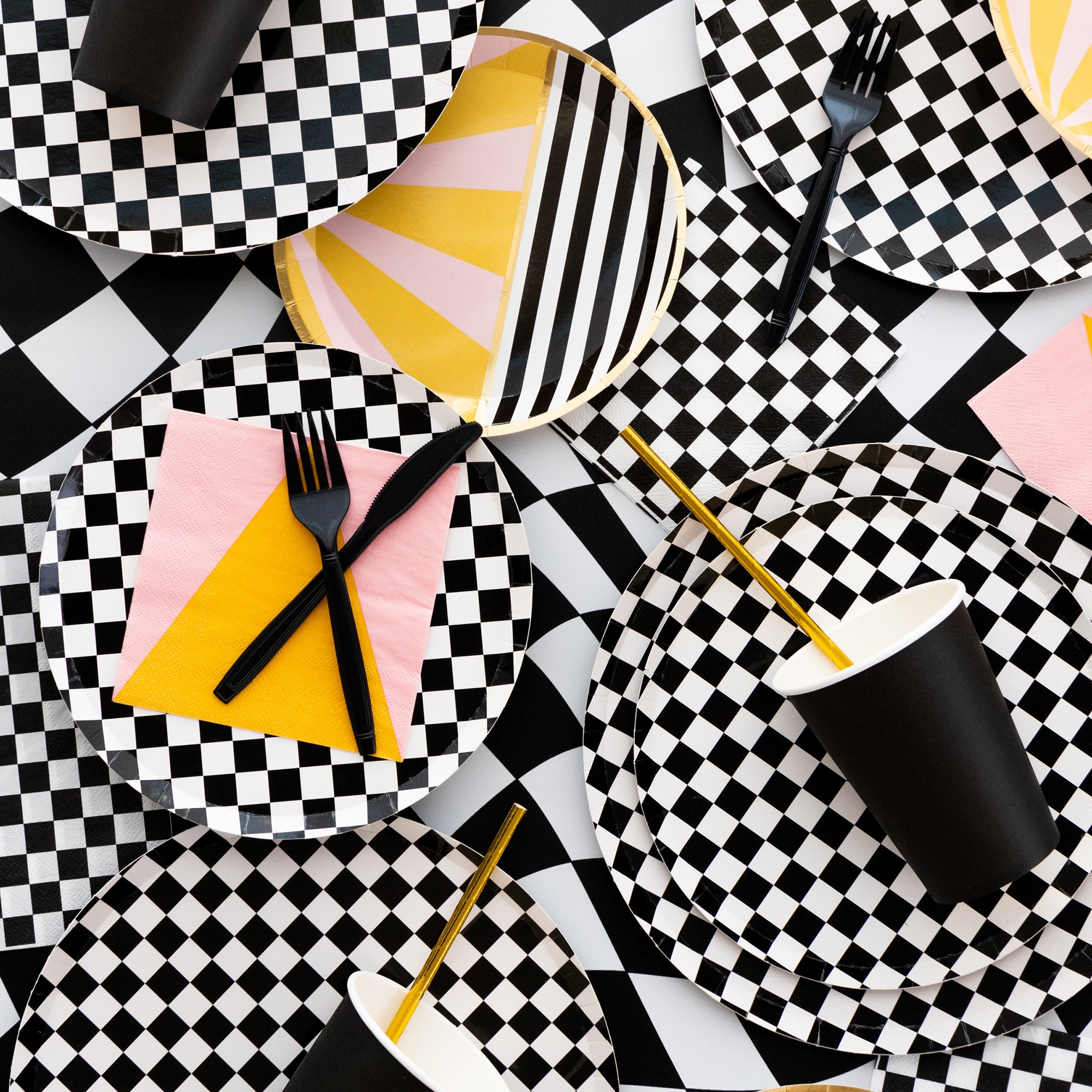 Inspired by the classic skater shoe, our Check It collection is sure to make your party checklist! The two-tone plates and checkered print napkins are perfect for mixing and matching with your favorite party pieces or used as stand-alone items.