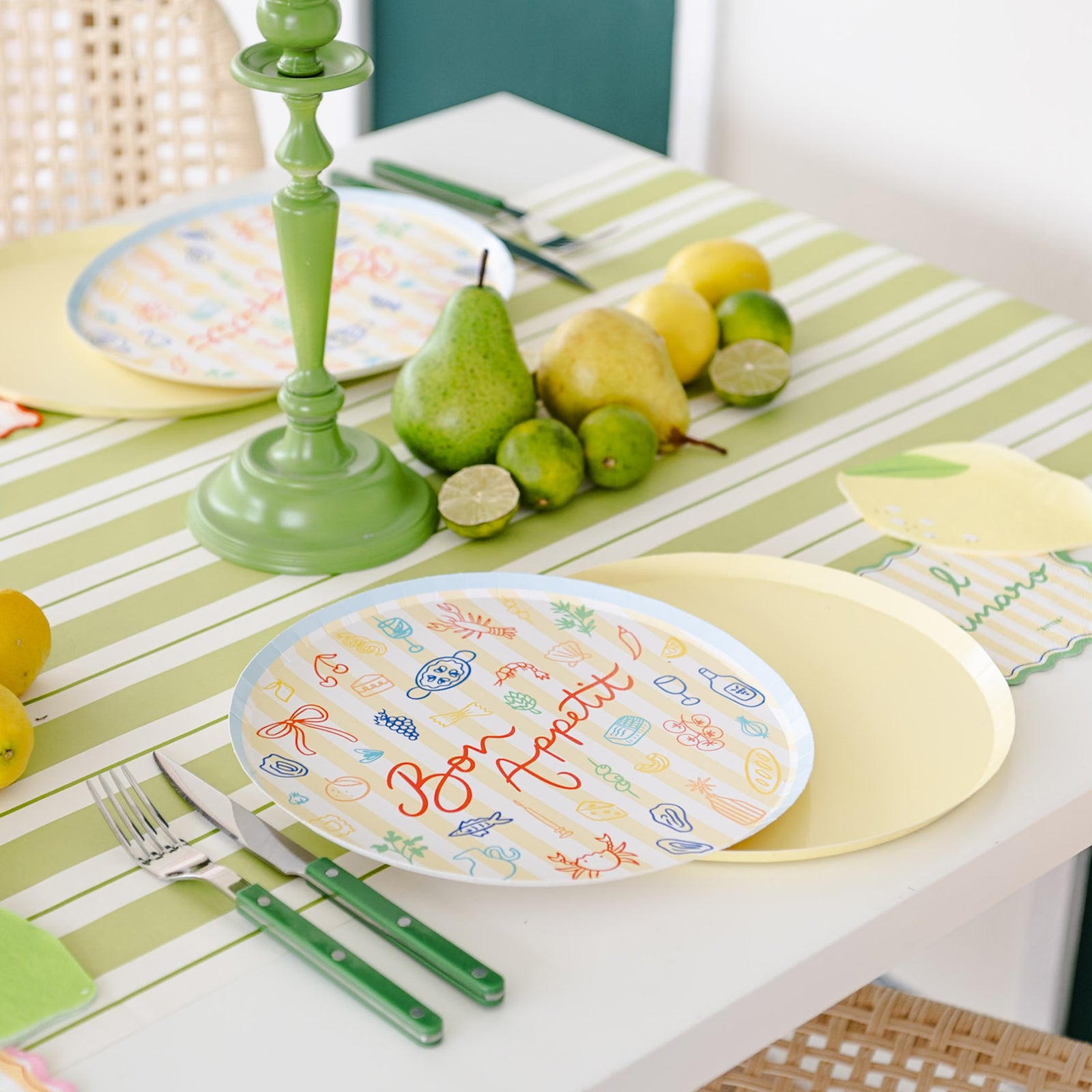 Boun appetito! Our Bon Appetit Dinner Plates are overflowing with charming illustrations and inspired by italian seafood feasts and vibrant Mediterranean life.
