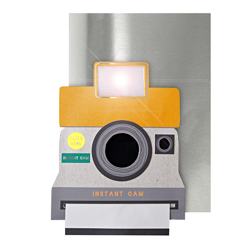 A stylish card for a keen photographer featuring an instant type camera with light-up flash bulb. The card is embellished with shiny silver foil and embossing and comes with a co-ordinating, silver envelope.